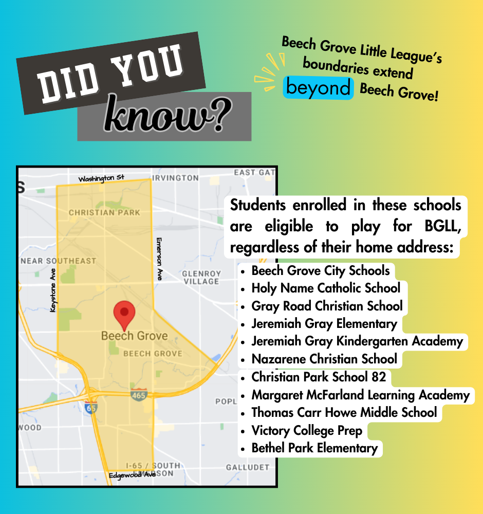 A waiver may be requested to allow a player that does not meet the residency or school enrollment requirement to play for Beech Grove Little League.